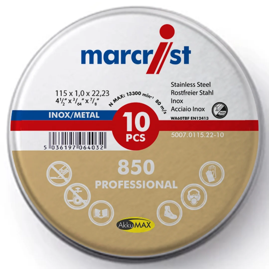 AkkuMAX cutting disc sets the standard in safety, life, cutting speed and cut finish on all metals including stainless steel, steel, high tensile steel, steel alloys