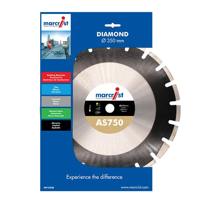 Extreme long life asphalt and asphalt ove concrete cutting with high speed petrol saws. Approved for up to 6350 RPM-100 m/s