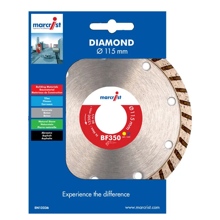 Precision diamond turbo rim. Building materials, soft to medium density materials, stone, concrete, reinforced concrete