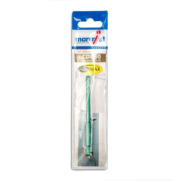 For use with Corded or Cordless Drills (max.) 750 – 1250 U/min. Perfect holes. Drills dry, no coolant required. Self-centering, no more scratched tiles. 10 – 20 Holes ca. 45 Sec. per Hole. Pinpoint accuracy – no drill guide needed. Asymmetric cutting tip technology with inbuild oscillation. Available diameters of the drill: 5,6,7 & 8mm.