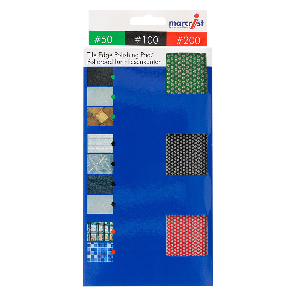 Diamond Hand Polishing Pad for Correcting/Polishing/Rectifying Sawn Tile Edges Neaten the edge in seconds, simply passing the Diamond Edge Polisher along the edge provides that professional finish in seconds and prevents harm from sharp edges. Pack contains 3 grits for the perfect finish from fine glass to coarse Granite.
