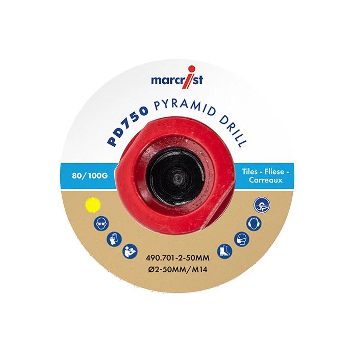 The PD750 Pyramid Diamond Drill is your ultimate solution for enlarging, shaping, bevelling, and refining holes in hard materials such as porcelain, granite, and ceramics.