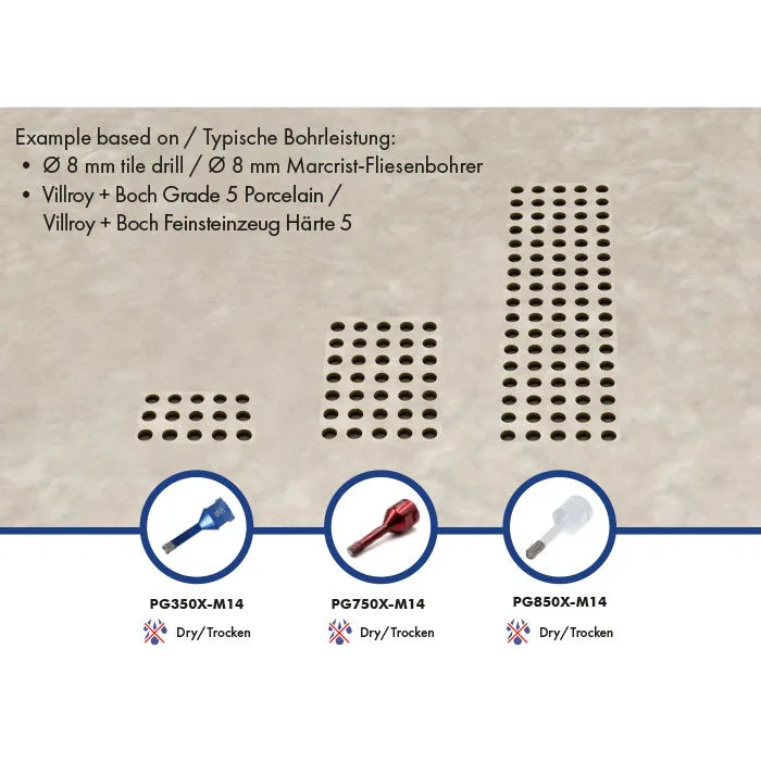Dry drilling in porcelain is now easy, always drills however hard the tile is.